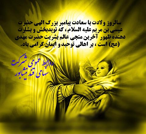 سالروز ولادت با سعادت چهارمین پیام آور وحی الهی ، حضرت عیسی بن مریم بر همگان گرامی باد