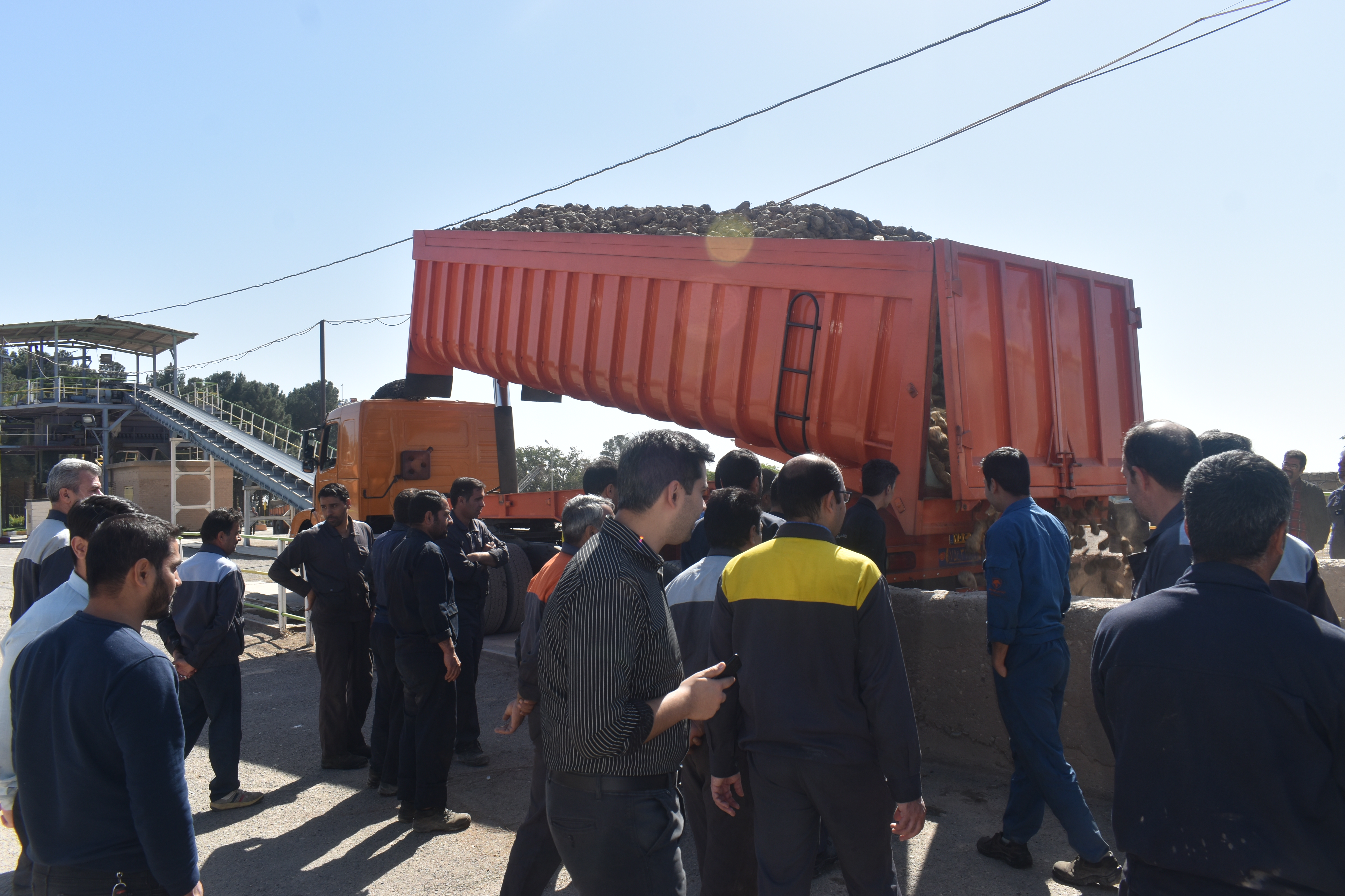 که با لطف خداوند متعال و هماهنگی حاصله توانستیم در ساعت 10 صبح روز یکشنبه مورخ 1401/07/17 با حضور مدیریت محترم عامل آقای دکتر محمود شهراسبـی، ریاست کارخانه،آقای مهندس رشید حاجی سلطانـی،مدیران داخلی و کارشناسان و پرسنل مجموعه ، چغندر را از پیمانکاران محترم دریافت نمائیم