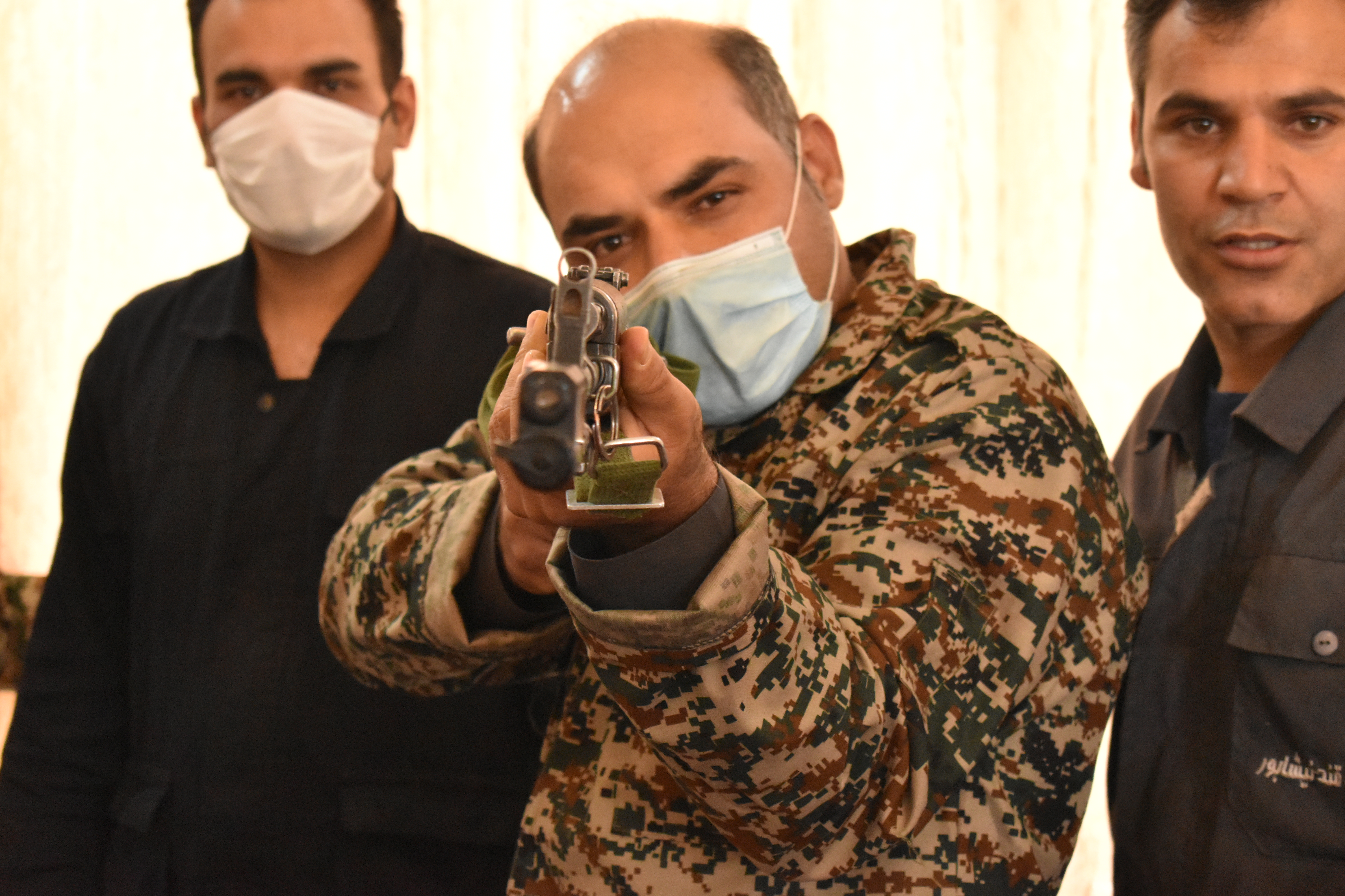 در پایان اسلحه در اختیار شرکت کنندگان جهت آموزش عملی نیز قرار گرفت و با شلیک به طرف اهداف لیزری دقت تیر اندازی و مهارت خود را مورد سنجش قرار دادند .