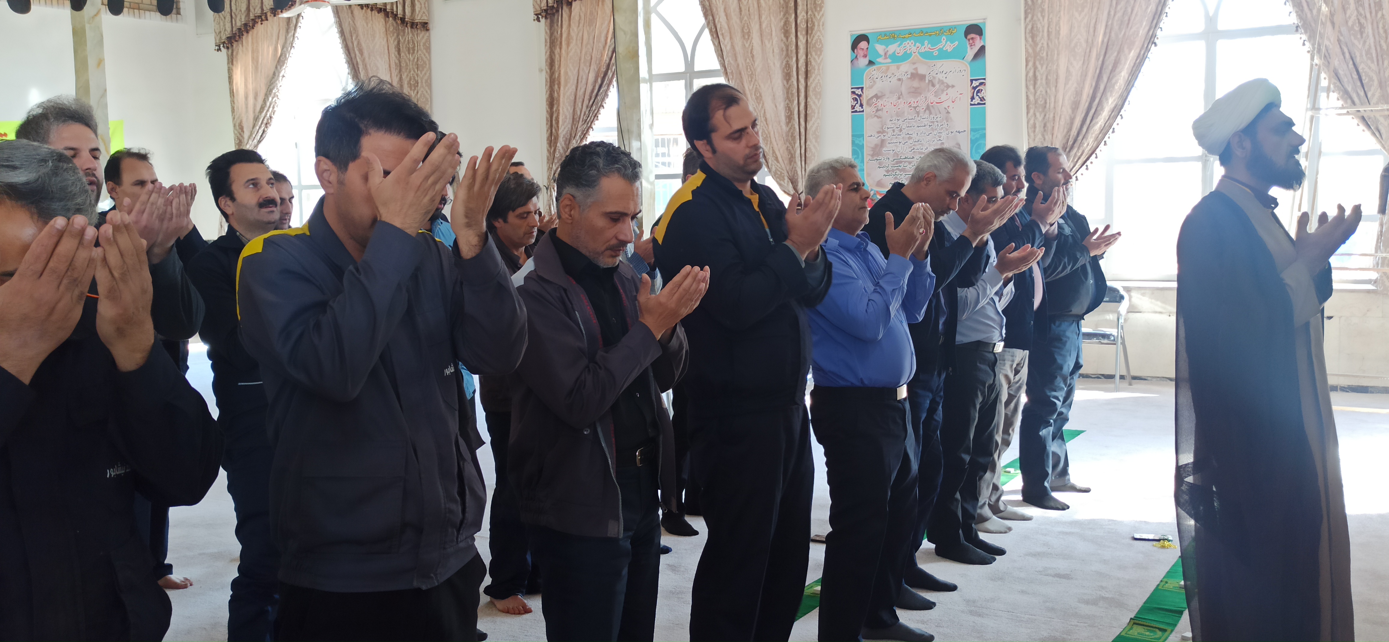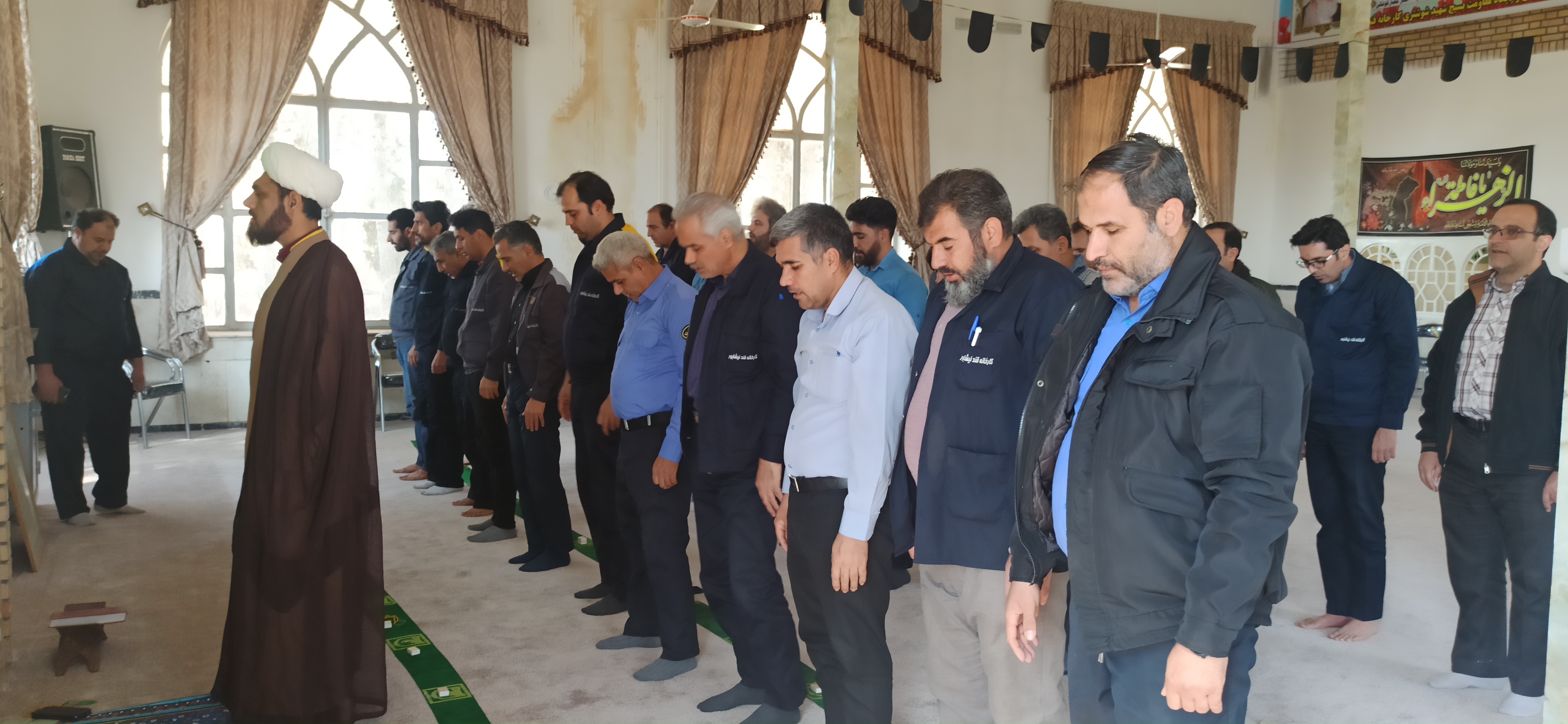 اقامه نماز ظهر و عصر به امامت حجت الاسلام و المسلمین حاج آقا عبدی، رئیس ستاد اقامه نماز شهرستان فیروزه ، در محل مسجد کارخانه قند با حضور ریاست محترم کارخانه قند نیشابور جناب آقای مهندس سلطانی و جمعی از پرسنل کارخانه صورت پذیرفت.