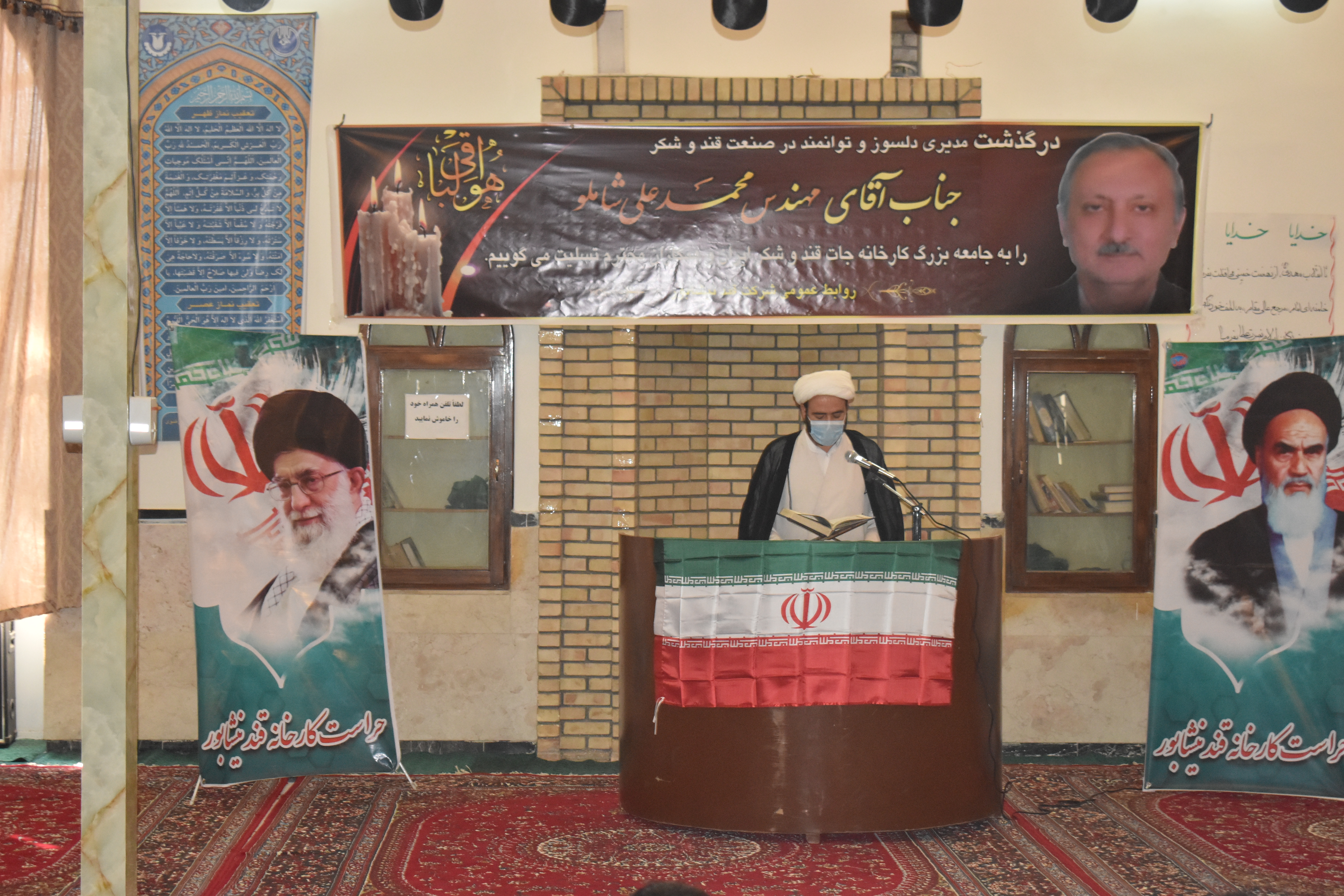 مراسم بزرگداشت سردار سپهبد شهید حاج قاسم سلیمانی ساعت ۹:۳۰ صبح امروز طبق برنامه ریزی با حضور مقامات اداری، نیروی انتظامی ، کشاورزان، پیمانکاران و پرسنل در محل مسجد کارخانه قند نیشابور برگزار گردید تا قدمی کوچک در شناسایی و بزرگداشت این سردار ایران و جهان اسلام برداشته باشیم.
