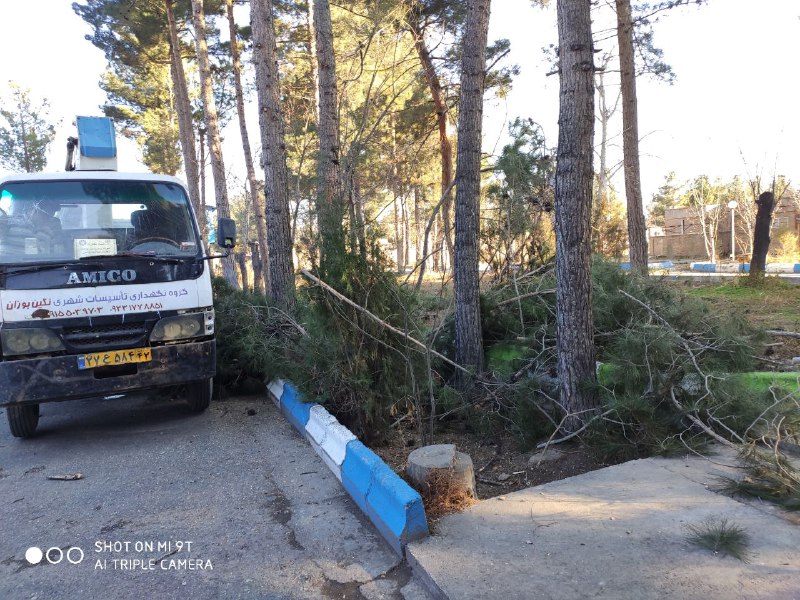 انجام هرس درختان محوطه داخلی کارخانه و ساماندهی فضای سبز
