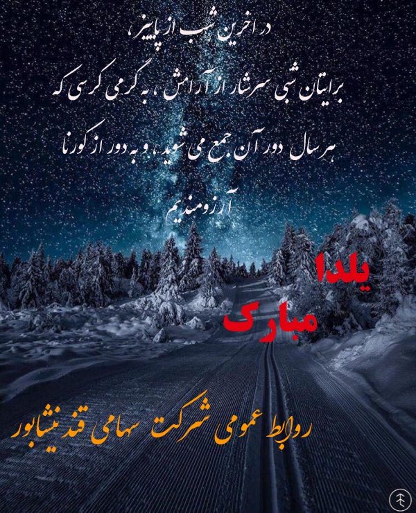 یلدای ایرانی، یادآور گرمای دل‌ها در بلندترین شب سال است. مدیریت عامل شرکت سهامی قند نیشابور با هدیه پک یلدایی پرمهر آرزو دارد لحظه‌هایتان سرشار از عشق، سلامتی و شادی باشد. از تلاش و همراهی شما عزیزان در مسیر رشد و موفقیت مجموعه صمیمانه سپاسگزاریم. باشد که در کنار هم، شب‌های بلند