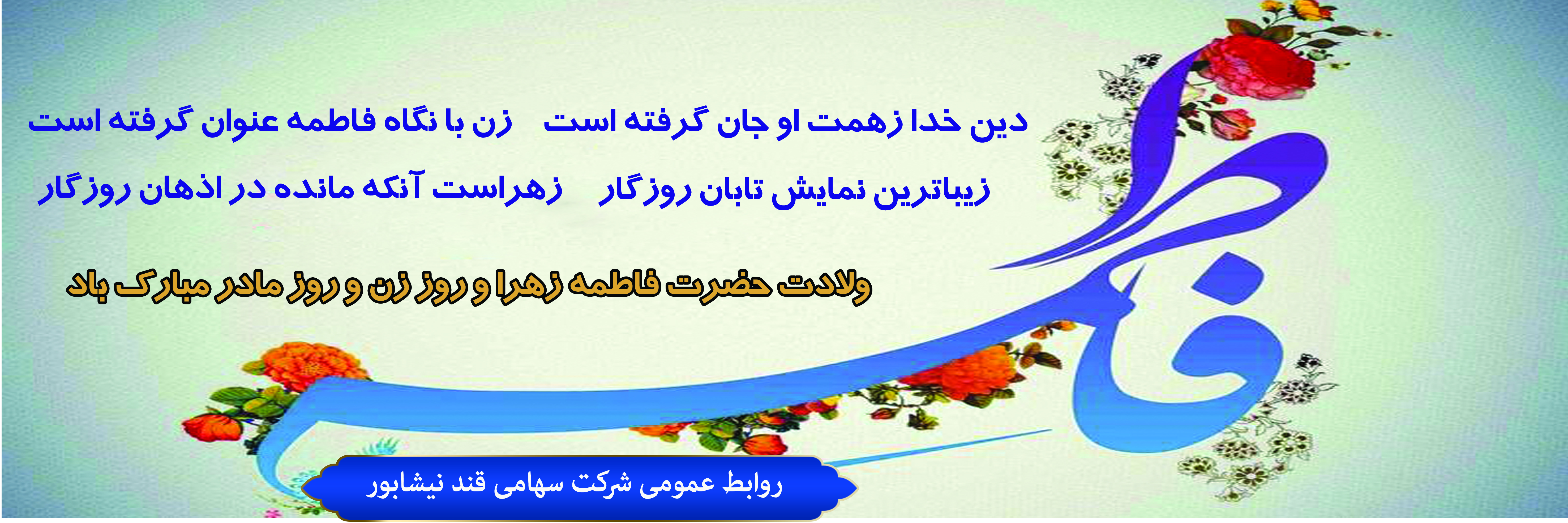 خبر - مراسم تقدیر از بانوان همکار شرکت سهامی قند نیشابور ، به مناسبت  میلاد حضرت فاطمه زهرا سلام الله علیها و  روز زن و مقام شامخ مادر